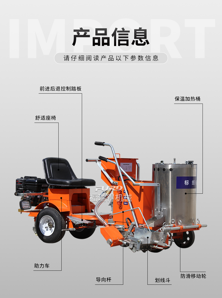 應(yīng)用于道路、高速公路、停車場(chǎng)、廣場(chǎng)和跑道的在平整地面上劃出不同約速、指引和警示等規(guī)則限制標(biāo)志的路面施工機(jī)械。