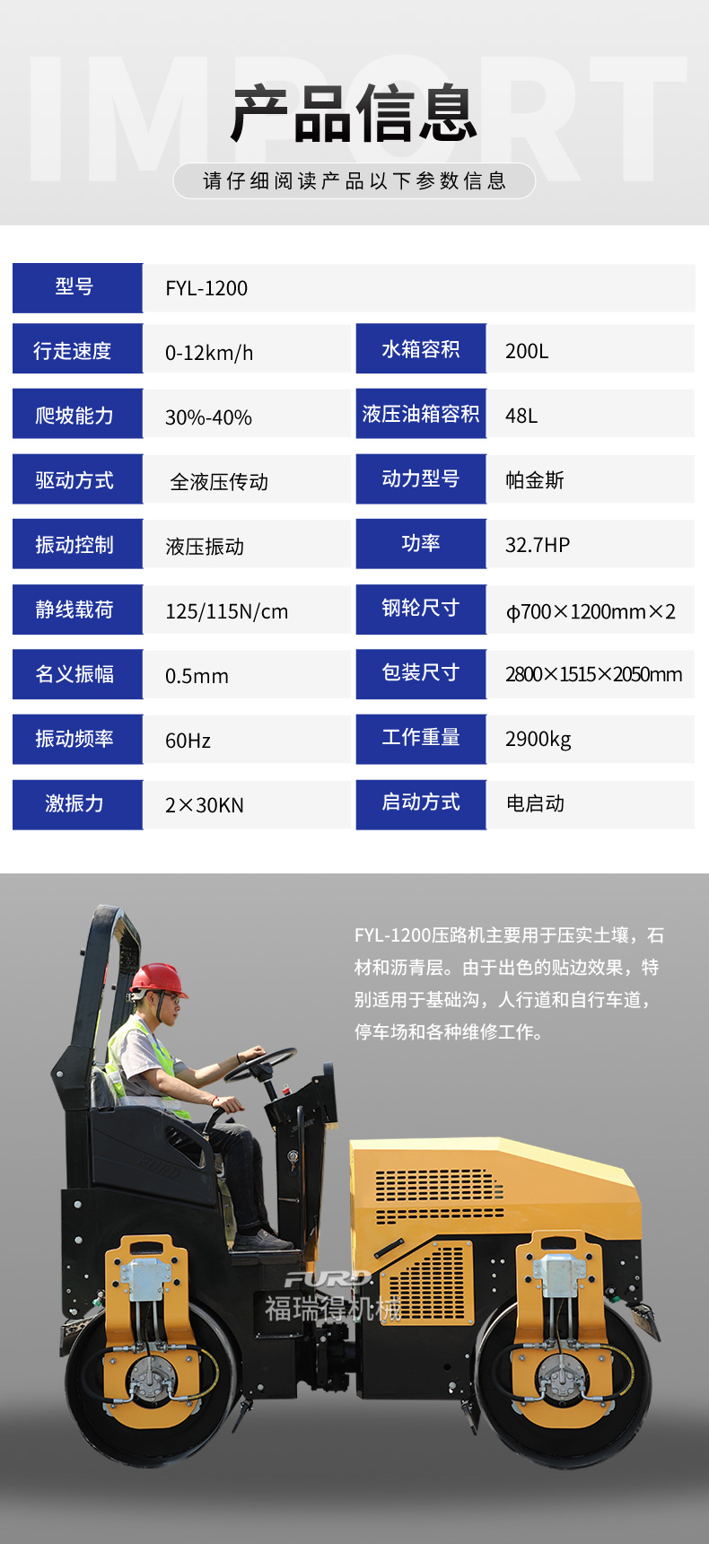 FYL-1200 3噸全液壓座駕振動壓路機(jī)